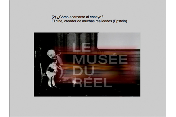 Quizás esa doble potencia, inter-activa, de lo visible, definiría, hasta cierto punto, el ensayo, teniendo en cuenta todas las contradicciones que ello levanta. Porque es cierto que habría que hacer una crítica a Godard, por un lado a esa insistencia en la visualidad (como refiere Rancière); y por otro, a lo que esconde (lo experimental, por ejemplo), cuando utiliza un mismo encuadre referencial, y un mismo tipo de mirada cinematográfica.
